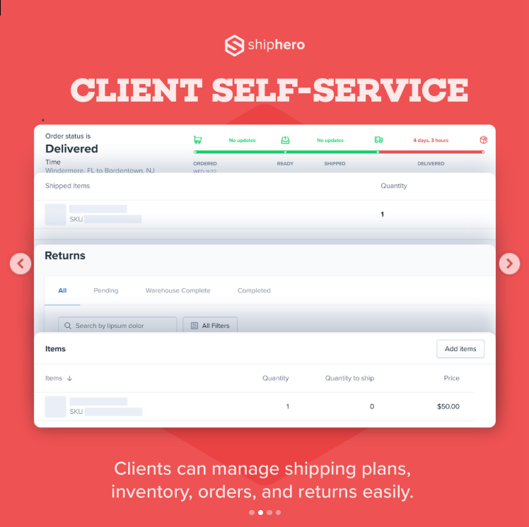 A beautiful, easy-to-use portal client portal and best-in-class warehouse management system for full visibility and control over your inventory, orders, and returns.